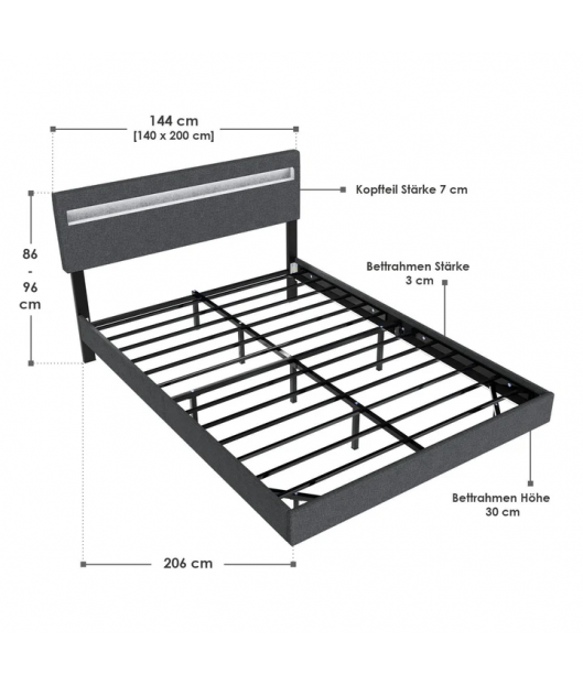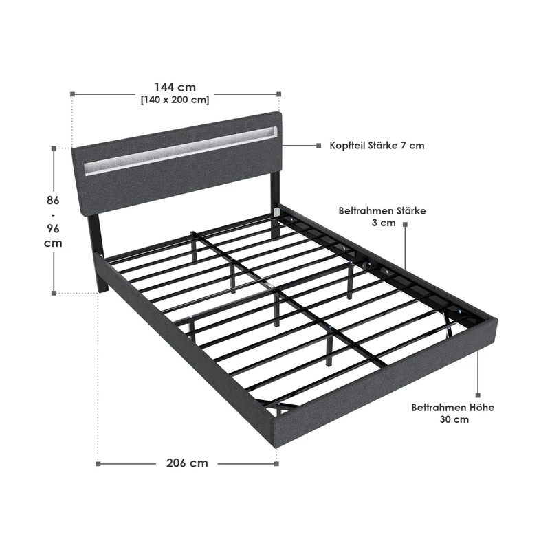 Atraskite stilingą ir novatorišką miegamojo baldą – „Lisabona“! Lova savo lengvumu ir elegancija perteikia ore tvyrančios ramybės įspūdį. Šis baldas – tai daugiau nei paprasta lova: tai vizualinis akcentas, kuris transformuos Jūsų miegamąjį į ramybės oazę. „Skraidančios“ konstrukcijos dizainas – kai lovos pagrindas atrodo lyg pakibęs ore, suteikdamas erdvės bei modernumo pojūtį. Įmontuota LED apšvietimo juosta, kurią galima valdyti nuotolinio valdymo pulteliu – sukuria jaukią atmosferą. Reguliuojamas atlošas kuria komfortą ne tik miegojimui, tačiau yra puikus atlošas skaitymui ar poilsiui miegamajame.
