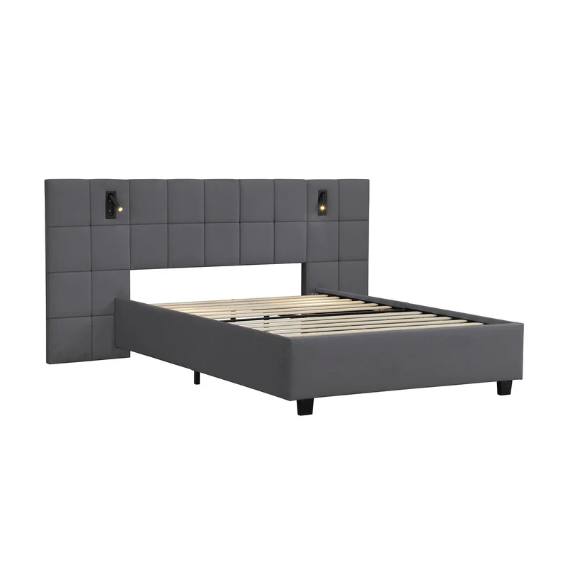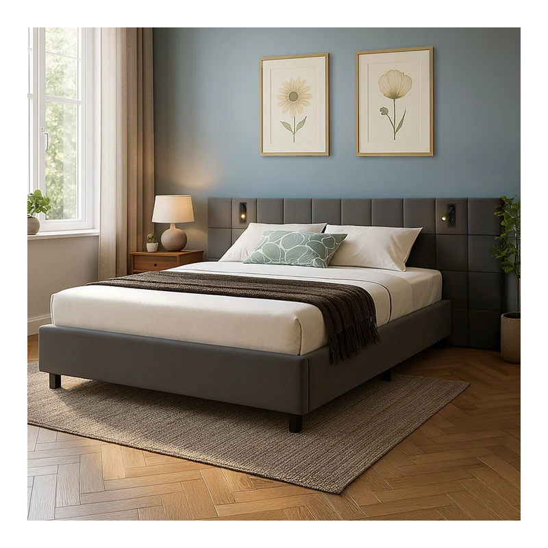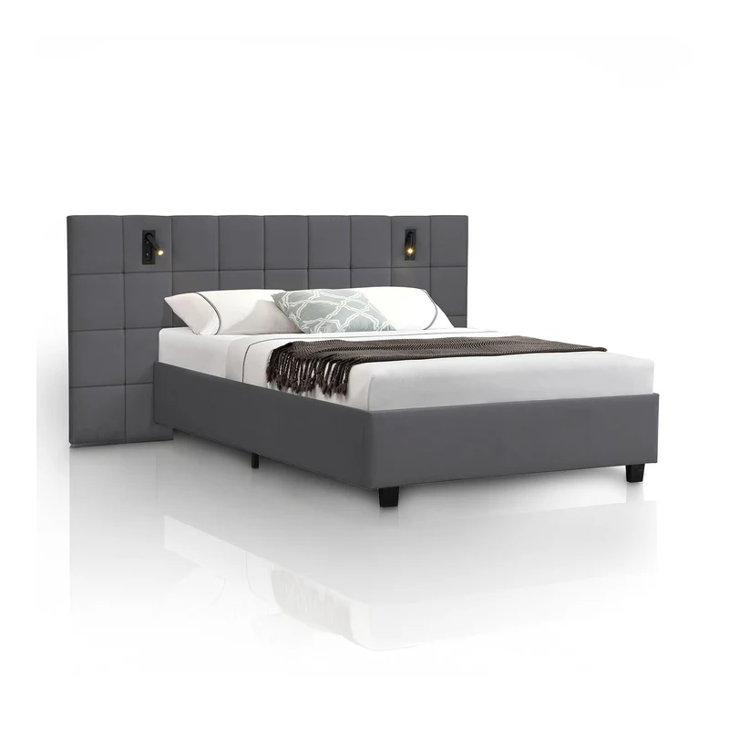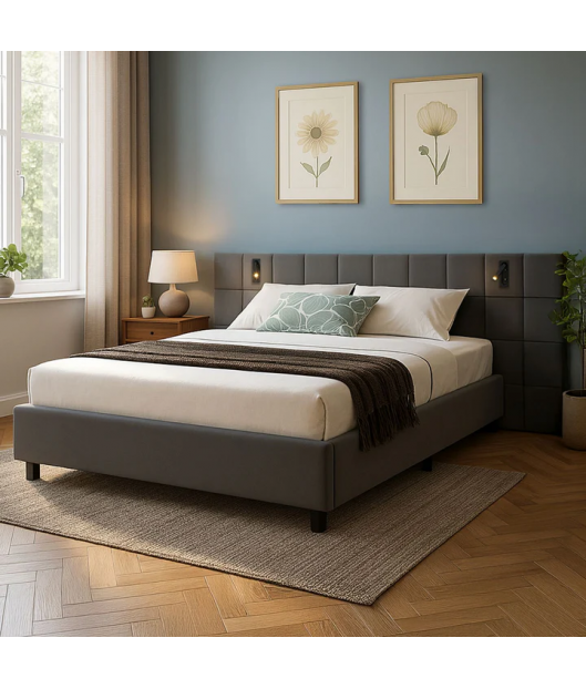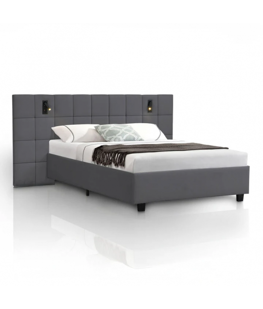 Galvūgalyje integruotas apšvietimas užtikrina, kad galėtumėte patogiai skaityti lovoje neįjungdami pagrindinės šviesos. Apšvietimą galima valdyti nuotolinio valdymo pultu. Erdvus galvūgalis su stilingu languotu dygsniavimu suteikia lovai modernumo ir prabangos pojūtį. Suteikite savo kambariui modernumo ir jaukumo.