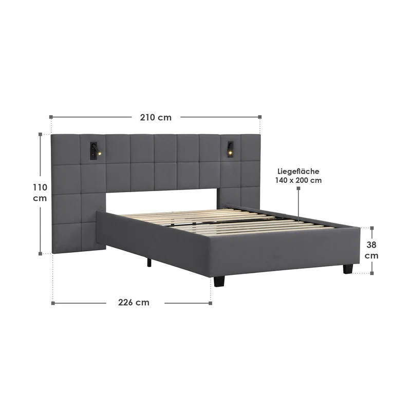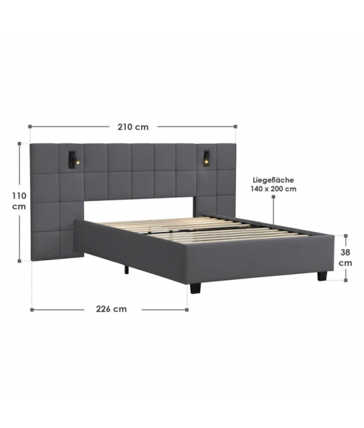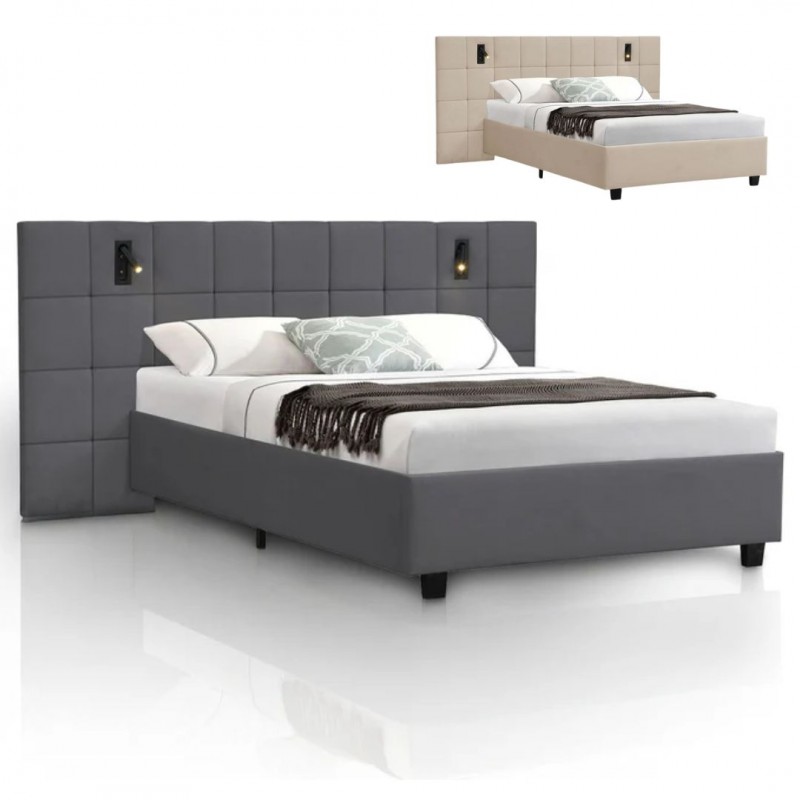Stilinga lova „Luzana“ 140x200 cm smėlio arba tamsiai pilkos antracito spalvos apmušta audiniu bei turi grotelių rėmu, LED skaitymo lemputes ir paminkštintą galvūgalį. Šie sprendimai sujungia komfortą, stilių ir praktiškas detales į vieną visumą. Ji suteikia stabilią atramą ir tinka kaip viengulė arba dvigulė lova. Aksominis, minkštas lovos rėmo apmušalas užtikrina ramias naktis ir prabangų dizainą. Ši elegantiška aksominė lova yra būtinas bet kurio išskirtinio miegamojo atributas.