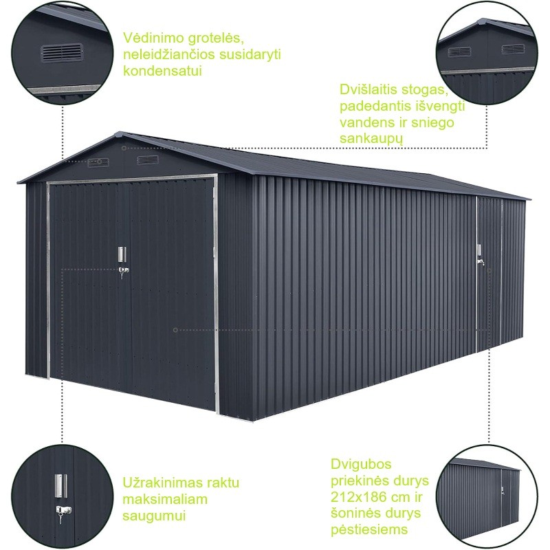 METALINIS GARAŽAS "LOTUS" 308 x 465 x 225 cm SU PALČIOMIS...