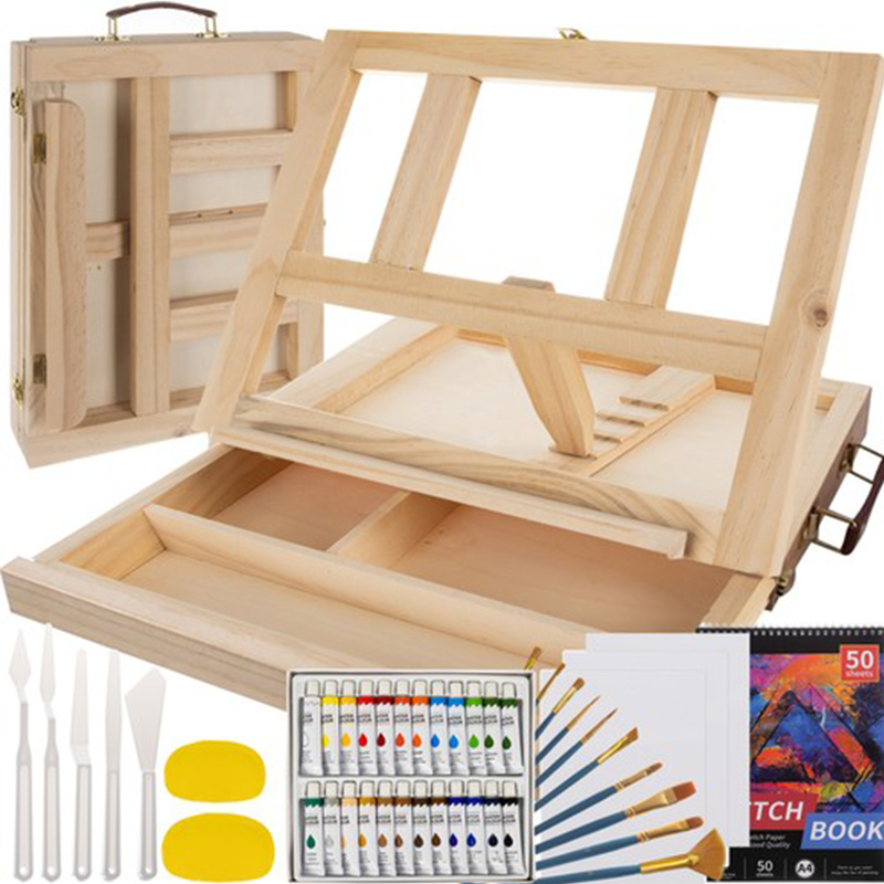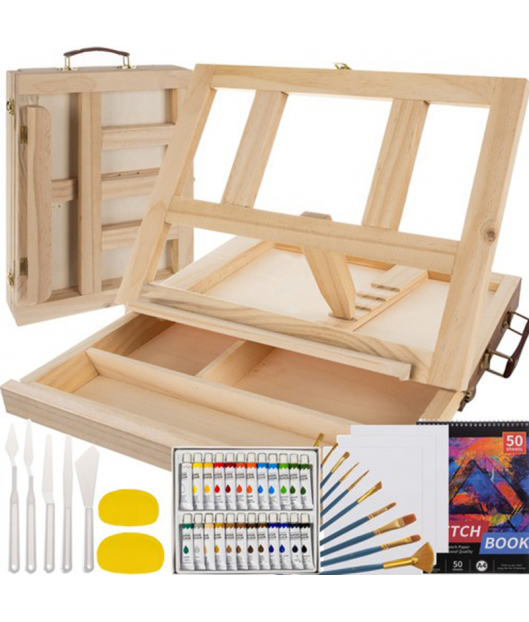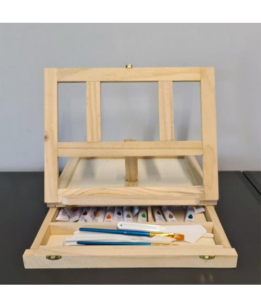 medinis lagaminėlis-molbertas;