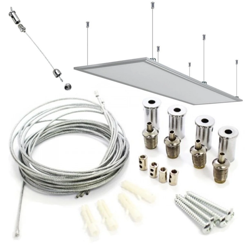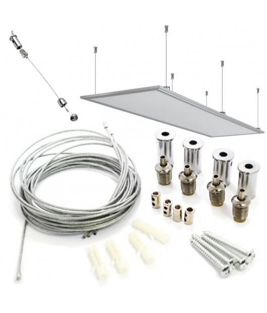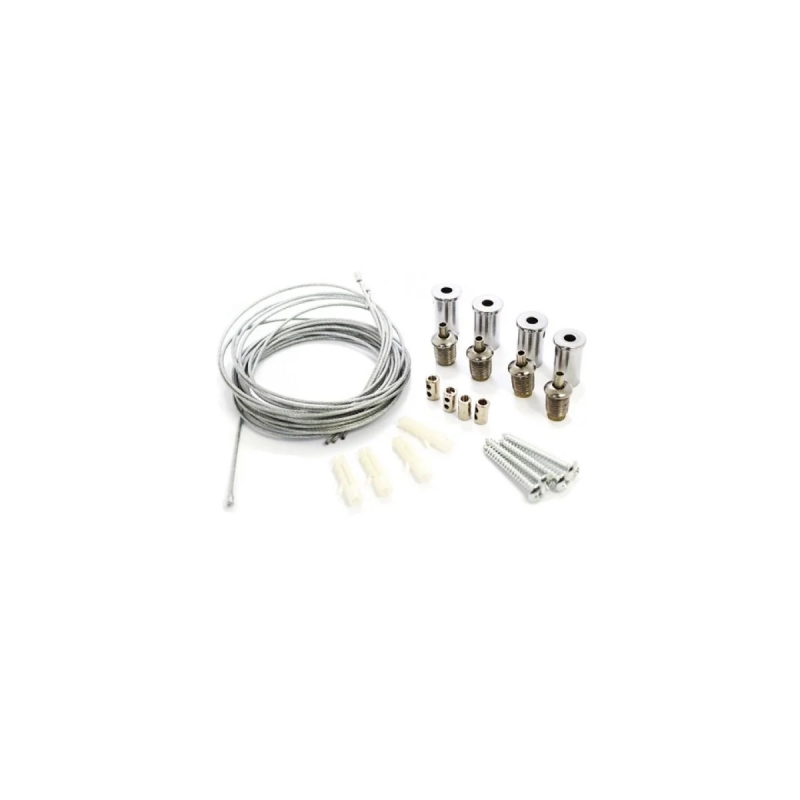 Aukštos kokybės šildymo plokščių pakabinimo rinkinys skirtas IR šildytuvų panelėms. Komplektą sudaro nerūdijančio plieno trosai (1 m ilgio), tvirtinimo laikikliai ir varžtai – visa, ko reikia saugiam ir stabiliam montavimui ant lubų. Estetiškas minimalistinis dizainas puikiai dera prie modernių patalpų interjerų, o nerūdijanti medžiaga užtikrina ilgaamžiškumą ir atsparumą aukštai šilumai. Montavimas itin paprastas – instrukciją rasite komplekte.