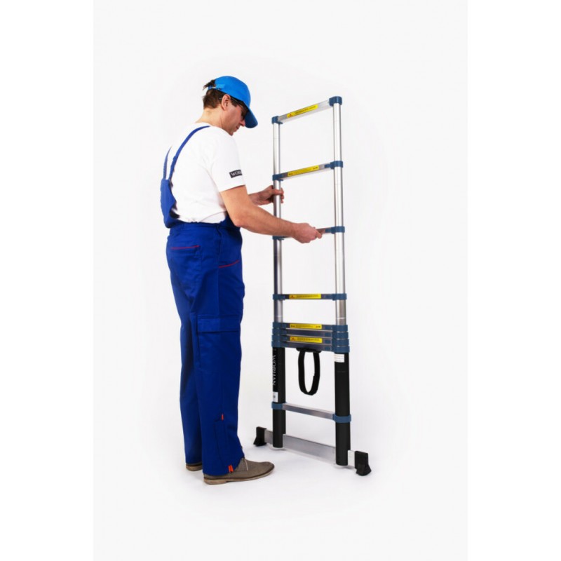 Gaminant šias kopėčias prioritetas sutelkiamas į: saugumą, ilgaamžiškumą ir patobulintą stabilumą, ypač dirbant didžiausiame aukštyje. Šias kopėčias rekomenduojame kasdieniam ir pastoviam naudojimui specialiesiems darbams ir asmeniam naudojimui. Šios teleskopinės aliuminės kopėčios pagamintos pagal EN131 standartą. Lengva ir saugu naudoti fiksavimo mechanizmą.