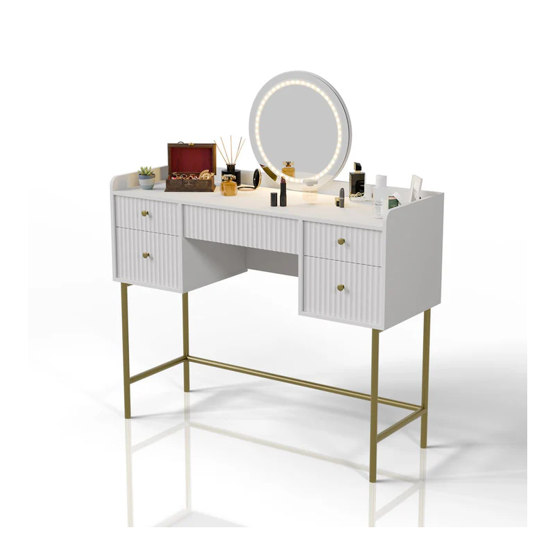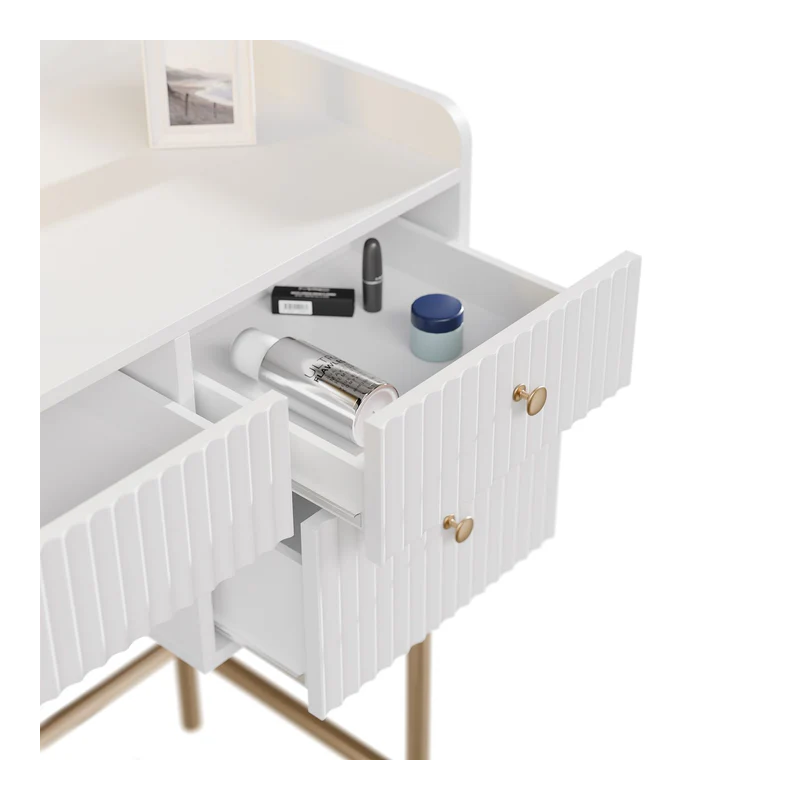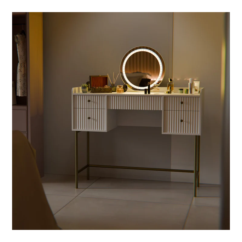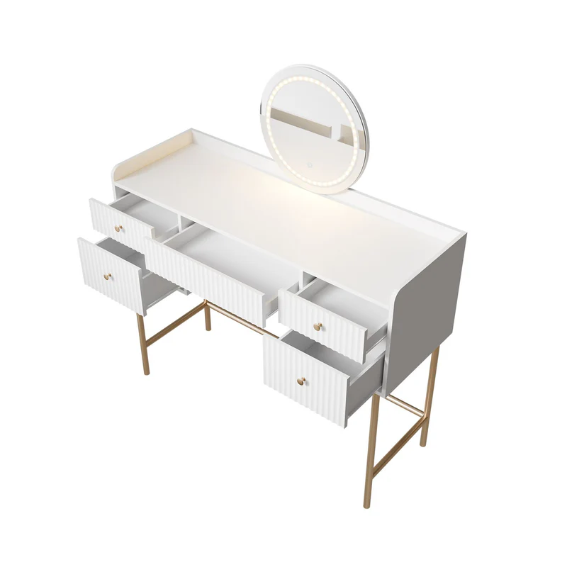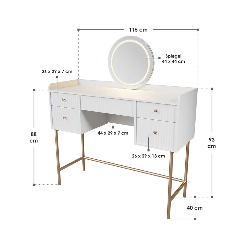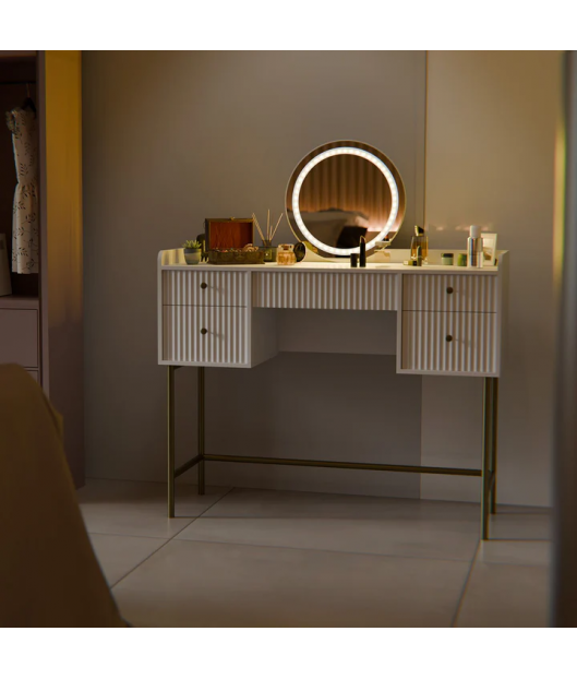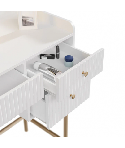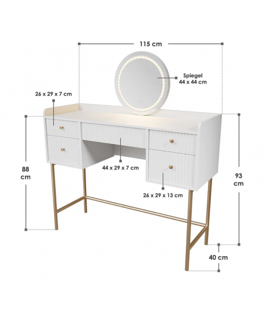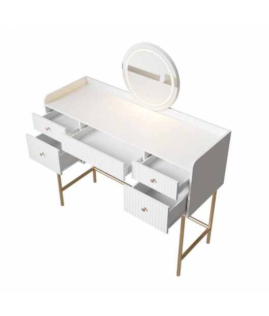 Atraskite stilingą ir funkcionalų makiažo staliuką „Samira“, sukurtą tam, kad suteiktų jūsų grožio ritualams komfortą, organizuotumą ir eleganciją. Šis kosmetikos staliukas su veidrodžiu idealiai tinka tiek namams, tiek profesionaliam grožio salonui – derantis dizainas, kokybiškos medžiagos ir praktiškos funkcijos.